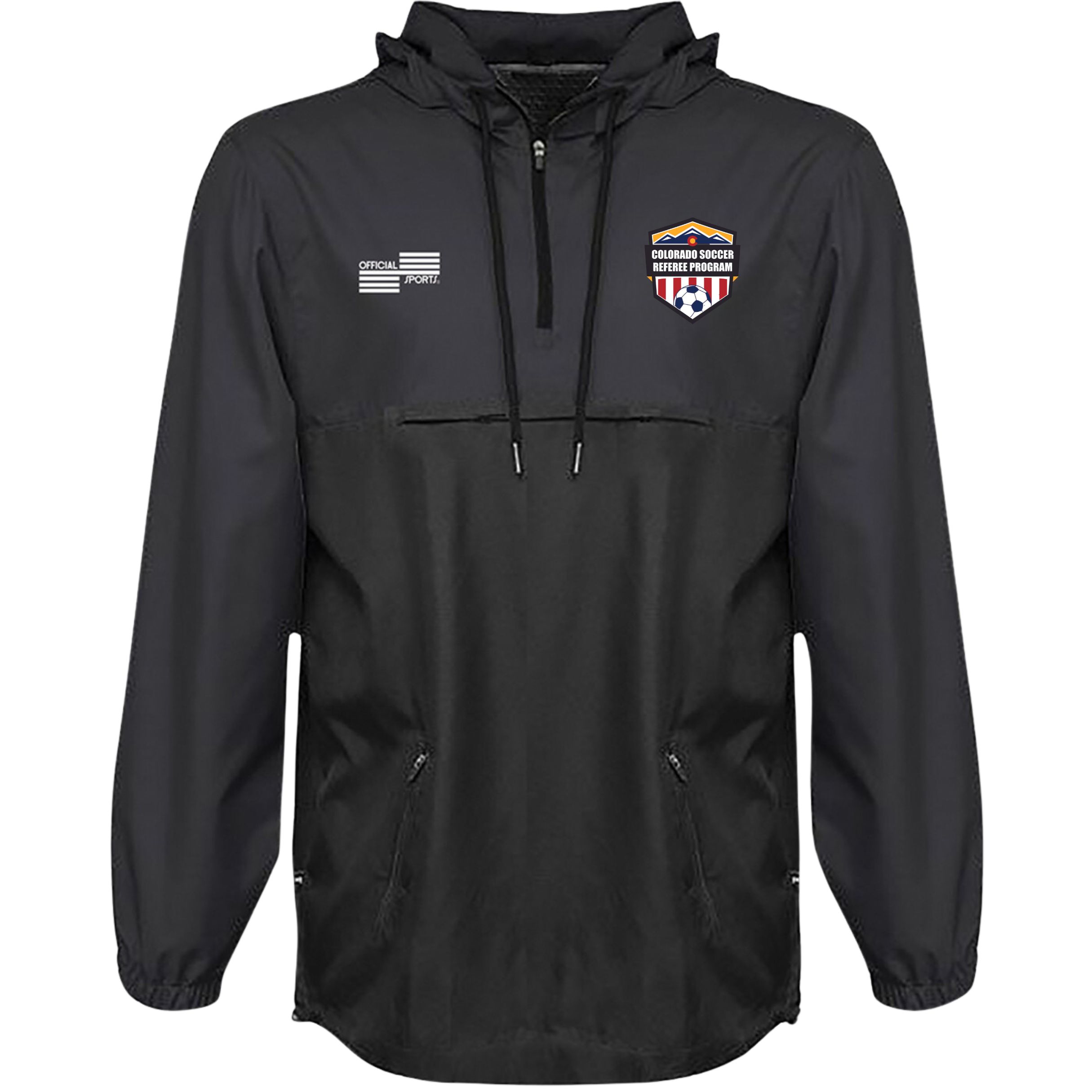 Everyone needs this in their ref bag: be prepared for any weather with this easily packable & lightweight rain pullover. Designed for comfort and functionality with a back vent for breathability, a visor hood to keep the rain off your face, plus 3 zippered pockets to hold all essentials.