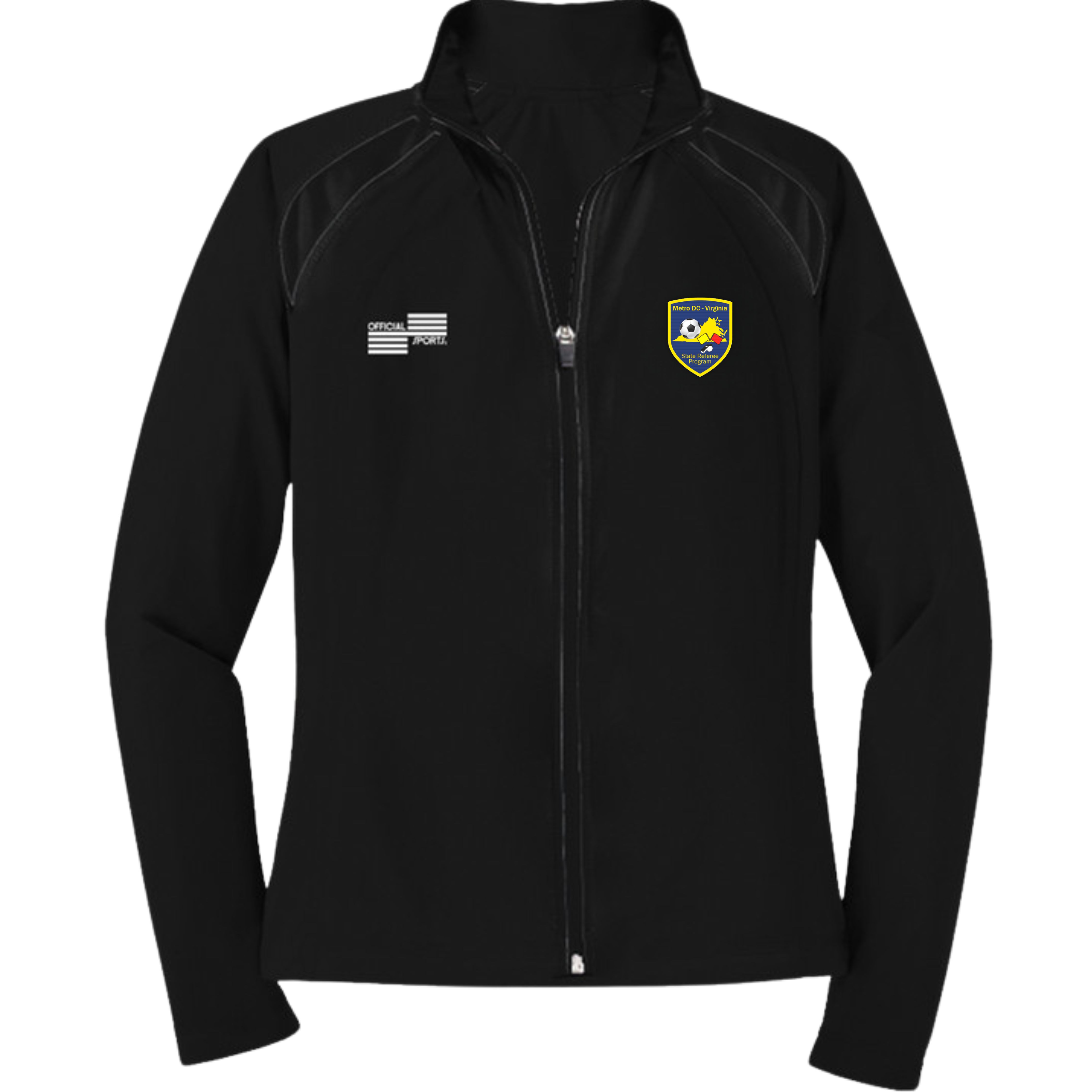 Widely popular, classic all black warm-up jacket perfect for fourth officials! Athletic styling with stand-up collar, side zippered pockets and an open hem with drawcord. Pair it with our #1270P Tapered Pants to complete your look.